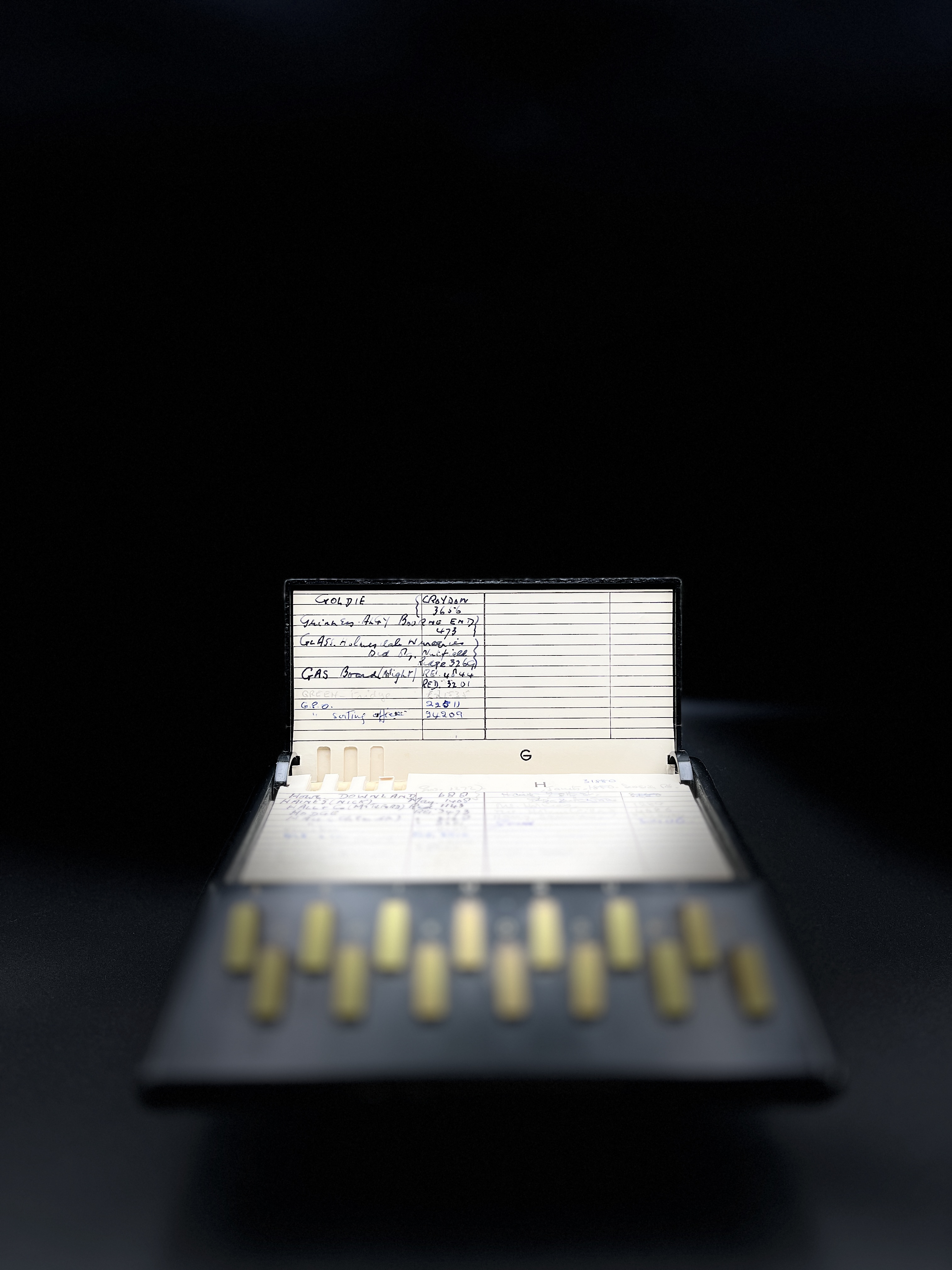 An original Bakelite Telephone Address Book, formerly the property of Land Speed Record holder, Lt. Col. A.T. Goldie Gardner. In good working order and complete with original numbers for Goldie’s friends, family and contacts.